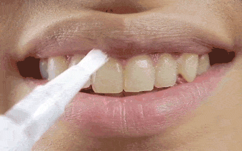 კბილების წინა მხარე დაიზილეთ ხელსახოცით და ნაზად წაისვით გელის თხელი ფენა კბილებზე.